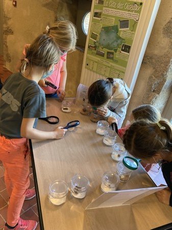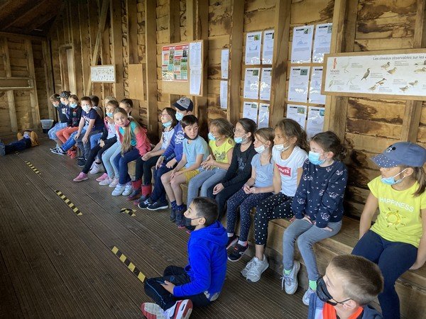 Puis dans un second temps, les enfants ont découvert « l’observatoire ». A l’aide de jumelles, ils ont pu apprécier les espèces présentes l’après-midi. Il y avait des canards à col vert, des grands cormorans, des spatules blanches, le chevalier à cul blanc, des aigrettes garzettes…