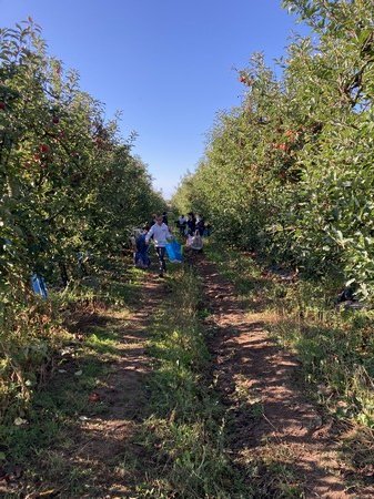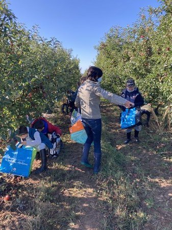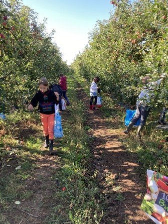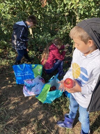 Après tous leurs efforts, les élèves ont eu la joie de déguster sur place des pommes fraiches issues du verger.