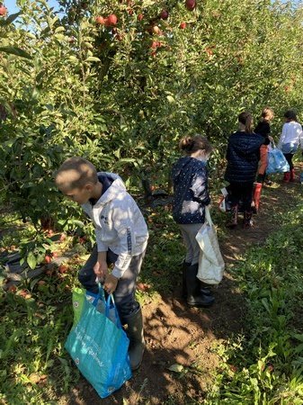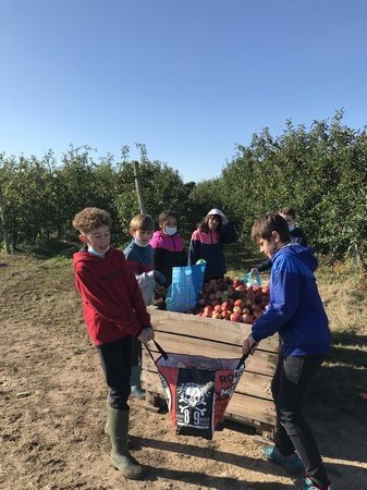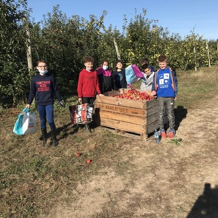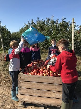Le jeudi 30 septembre, les élèves de CE2- CM1 et de CM1-CM2 avaient rendez-vous au verger de la Boissière de Montaigu pour cueillir des pommes. Les enfants se sont appliqués à les récolter sous un beau soleil automnal. Leur récolte ainsi que celle des parents de l’école a permis la fabrication du jus de pomme. Les bouteilles sont mises en vente au bénéfice de notre établissement.